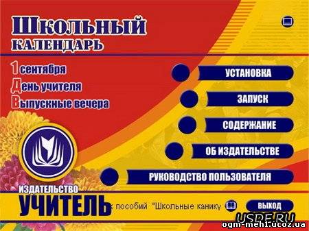 Предлагаемый компакт-диск называется «Школьный календарь (1 сентября, День учителя, выпускные вечера)» и является первой версией этой программы. Предлагаемые материалы помогут интереснее и эффективнее организовать работу по подготовке и проведению праздников школьного календаря.