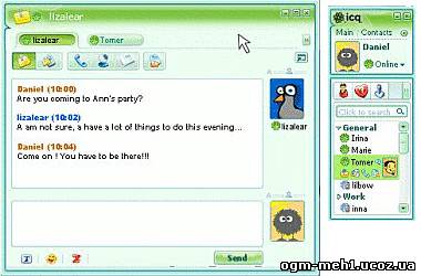 Программа ICQ первоначально разрабатывалась для обмена мгновенными сообщениями. Преимуществом такой концепции является то, что Вы можете общаться с друзьями, коллегами по работе или родственниками, не зависимо от того, где Вы находитесь. Достаточно просто иметь ICQ клиент и доступ в Интернет. На данный момент вы можете общаться по ICQ и с мобильного телефона. ICQ для мобильного не уступает по функциональности своему старшему брату. Вы просто общаетесь в режиме реального времени, отправляя только что набранные сообщения. Больше нет необходимости ожидать, когда освободится почтовый сервер, или оплачивать дорогостоящие международные звонки. Вы общаетесь с людьми, не отрываясь от своего занятие в Интернет.