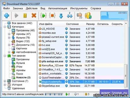 Прост и удобен в использовании: интуитивно понятный интерфейс; поддержка списков закачек с широкими возможностями сортировки; поддержка Drag'n'drop; Fast Update - проверка доступности новых версий программы. Download Master использует оригинальную технологию Активная Наглядная Корзина, которая позволяет вам полноценно работать с программой без открытия главного окна со списком закачек.