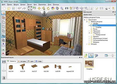 Астрон Дизайн - 3D моделирование Вашей комнаты, Программа позволяет смоделировать Вашу комнату, раскрасить стены. Пол и потолок. Установить окна и двери, а также расставить мебель, всевозможные аксессуары и тд. Весь ассортимент модульной (корпусной) мебели представлен компанией АСТРОН и включает в себя все ориентации, которые могут понадобится для в домашних условиях: гостиные, прихожие, спальни, детские, библиотеки, шкафы, а также витрины. Журнальные столики и малые формы.